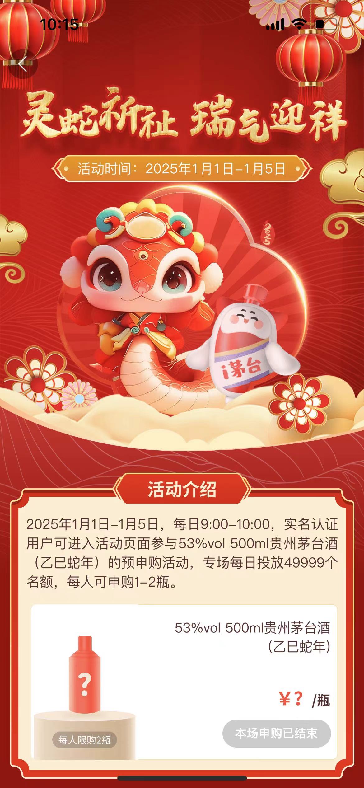 最近i茅台app特地推出活动【预申购蛇年茅台】,活动期间,每天投放49999个名额,活动期间一共5天,总计差不多25万个名额。
