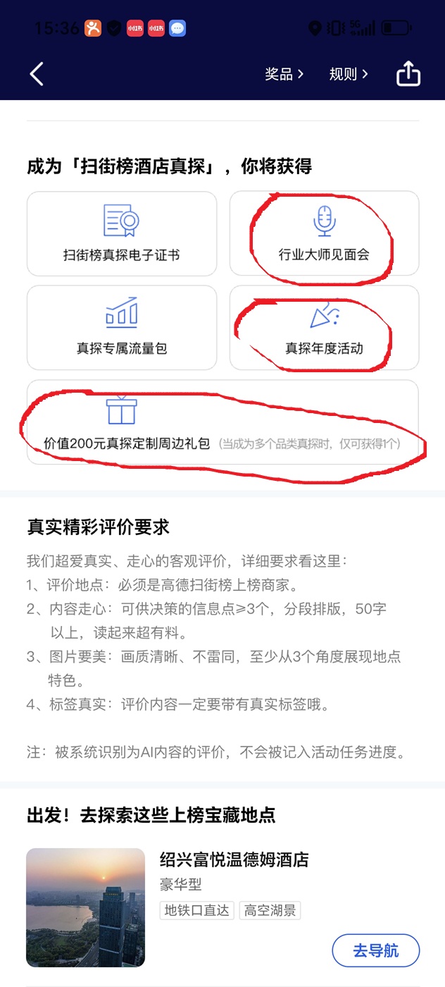 特别提醒一点,完成活动要求的是上榜的【美食】【景点】【酒店】【博物馆】。