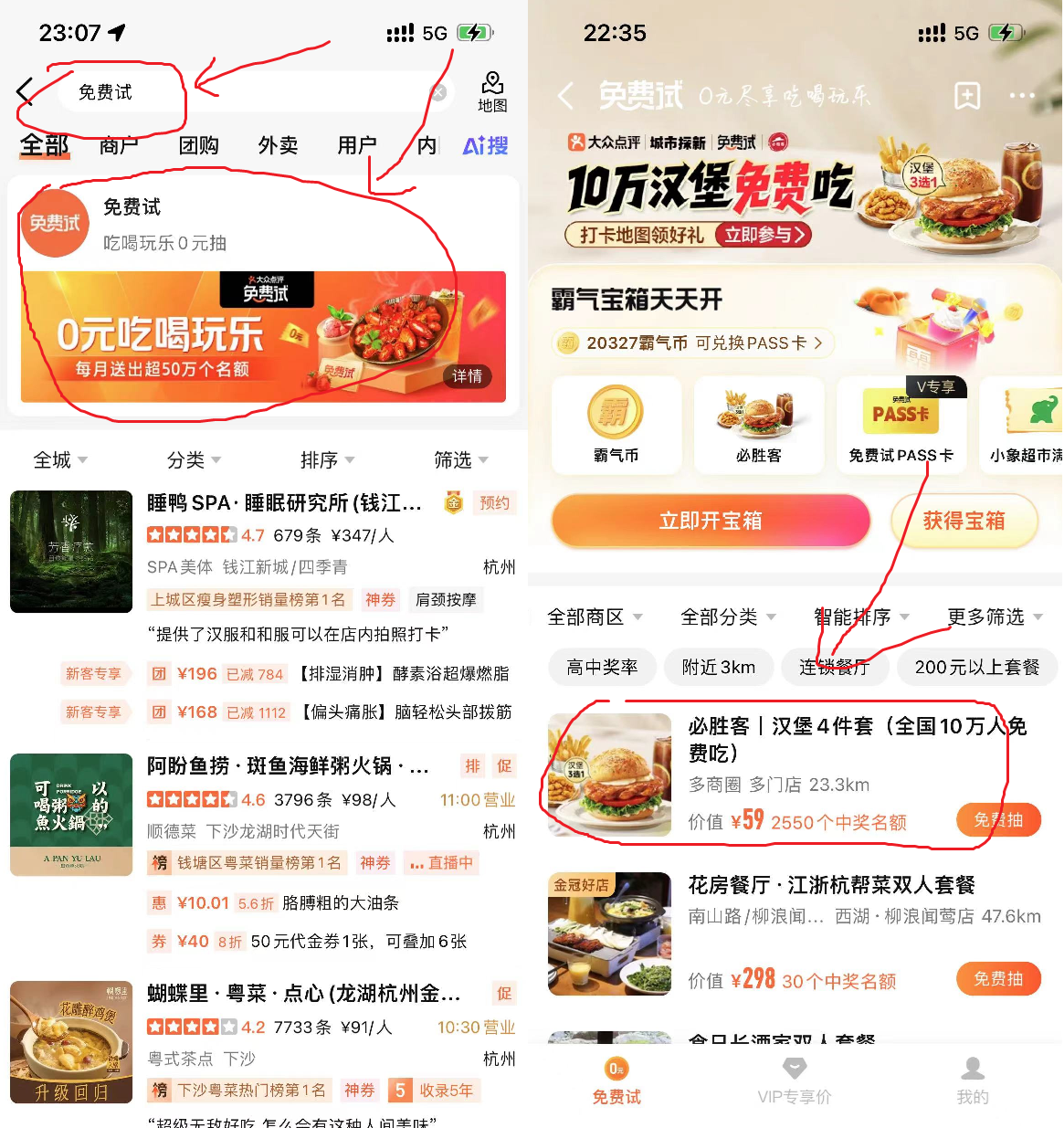 活动入口:打开大众点评app-搜【免费试】-点击进入活动页面点击【必胜客|汉堡四件套(全国10万人免费吃)】,点击报名选择必胜客门店后确认报名即可