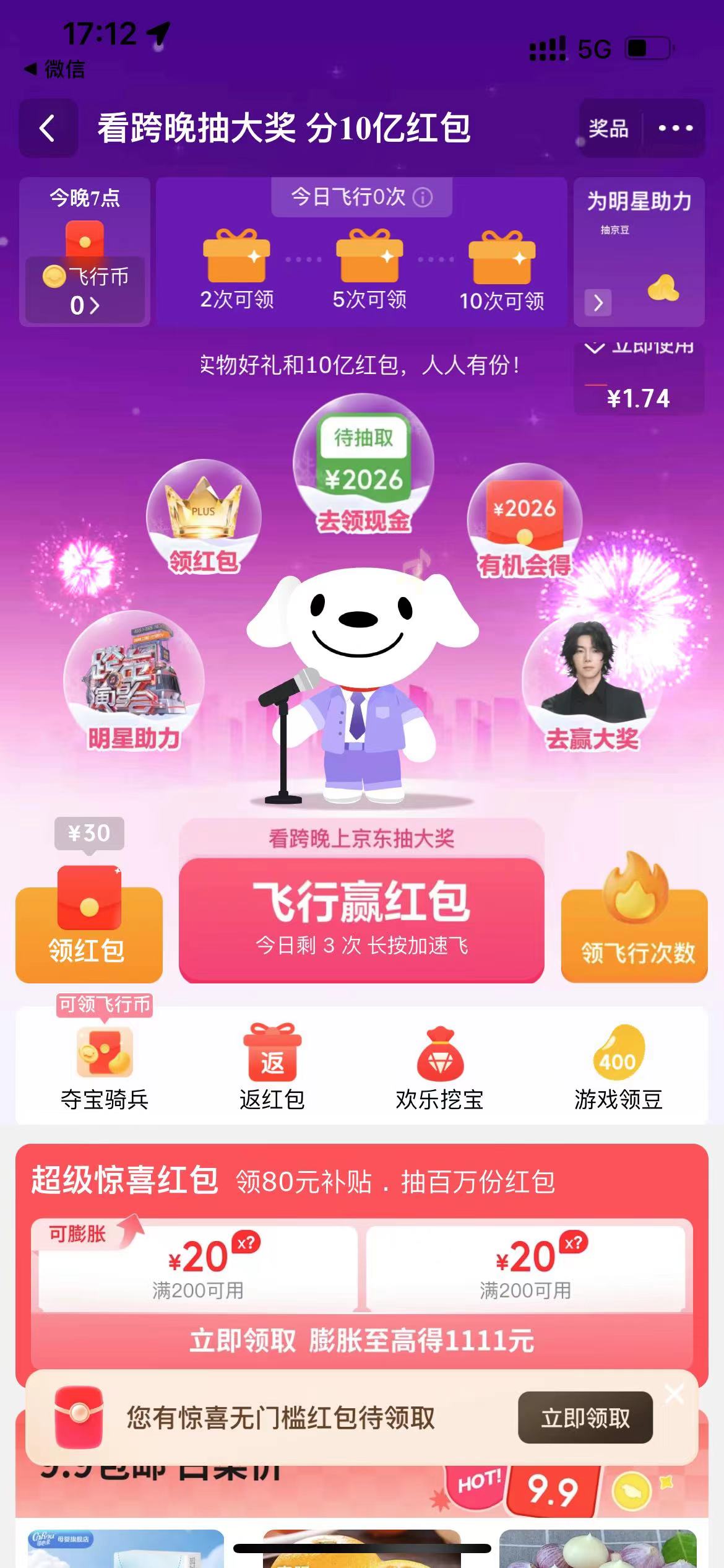京东两个跨年红包活动,分10亿红包和抢2026红包两个活动,别忘了参加!