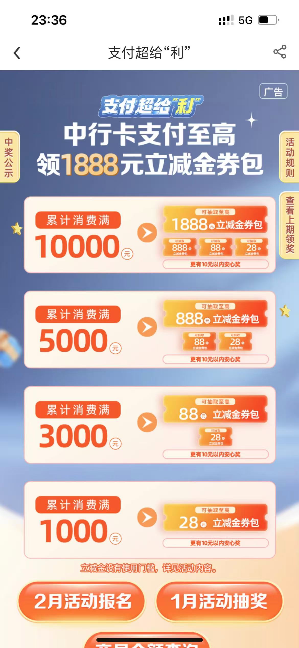 活动入口:中国银行app-首页-热门活动-点击【支付超给利】进入活动页面