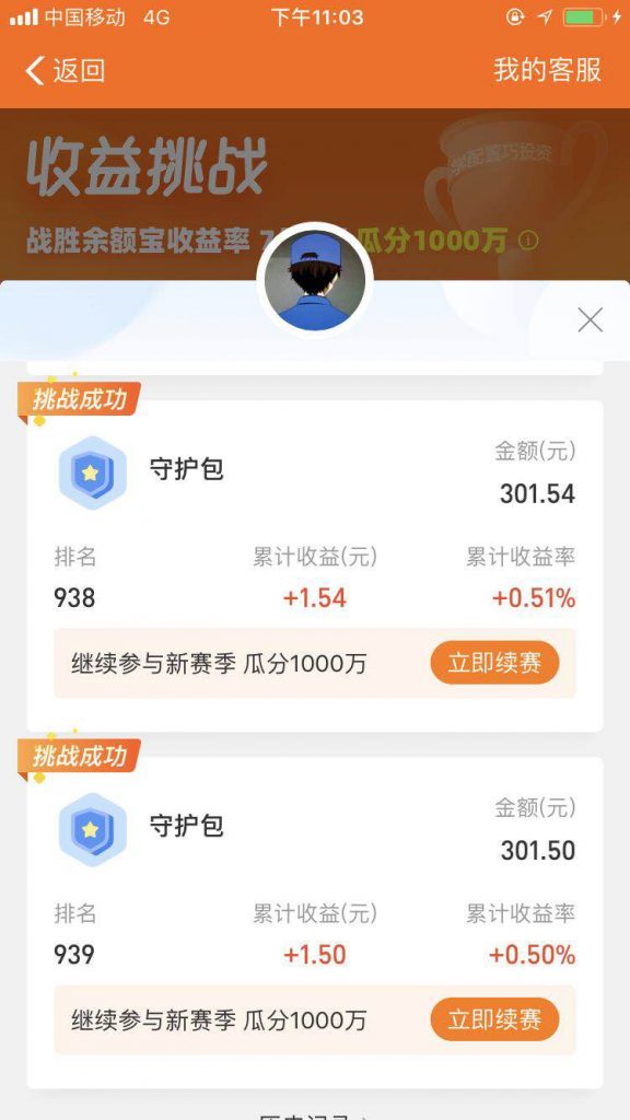 对于没有参加过的小伙伴,参与的时候,可以考虑选择购买守护包参与,活动期间,赛季收益大于余额宝收益即算挑战成功,可在赛季结束后参与奖励瓜分。