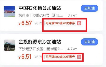 领取之后,到附近可用券(满200减20)的加油站使用即可